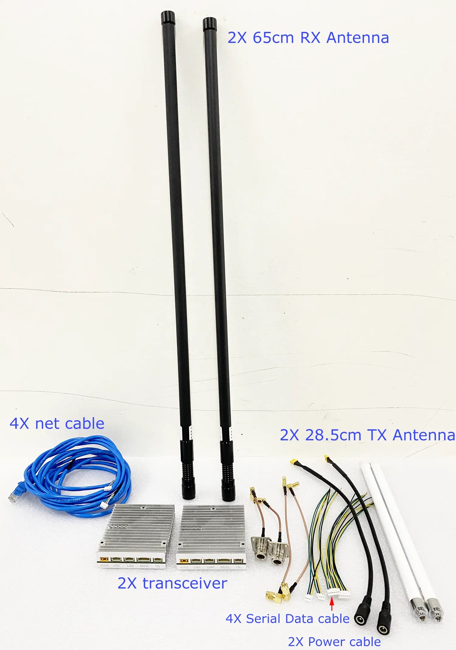 The price is based on one node. The quotation should be 2X if you need one transmitter and one receiver. (Unit Price including the two antennae, full set picture)